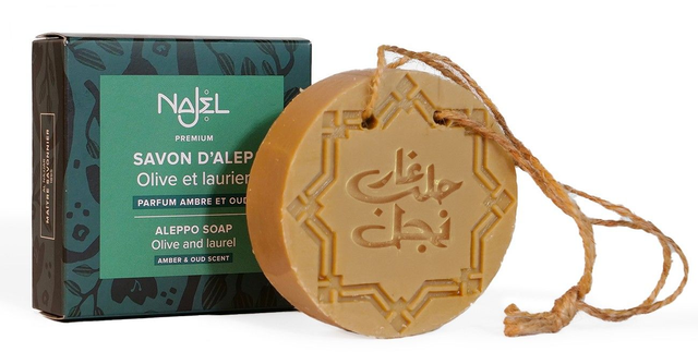 Crafted with the ancient traditions of Aleppo soap-making, Najel Oud and Amber Aleppo Soap blends rich, woody oud and warm, sensual amber into a bar that cleanses, nourishes, and perfumes the skin. Made with olive oil, laurel oil, and fragrances, this soap leaves skin soft, smooth, and subtly scented with an exotic, long-lasting aroma.